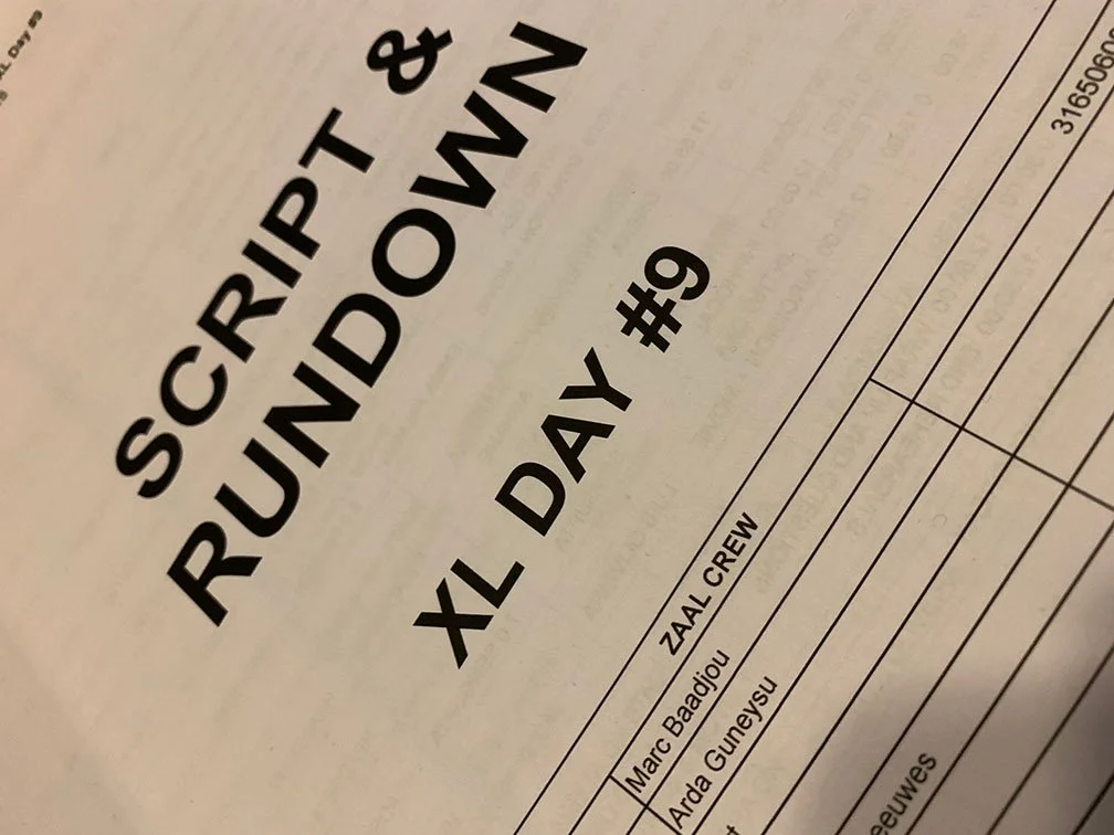 Het script en de rundown zijn een geschreven document dat alle acties, locaties en personages beschrijft voor het event. Zeer gedetailleerd dus… Het fungeert als de blauwdruk voor de uitvoering en geeft aan wat men moet doen tijdens hun moment op het podium. Ook bevat het aanwijzingen voor de regisseur(s) en het productieteam. Scripts zijn essentieel voor events en hebben een waardevolle opbrengst: duidelijke communicatie.